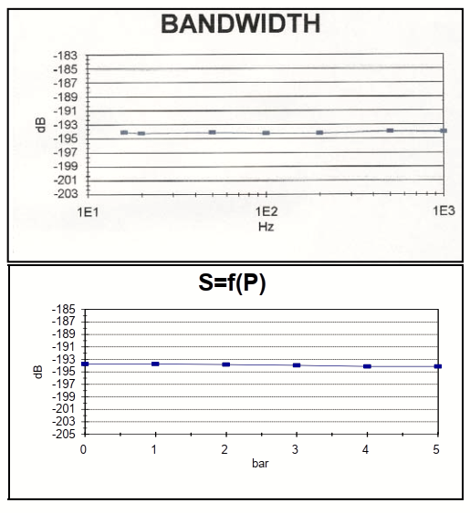 Sensitivity : 20v / bar +-18% (-194 db) ref: 1v/ µ pa